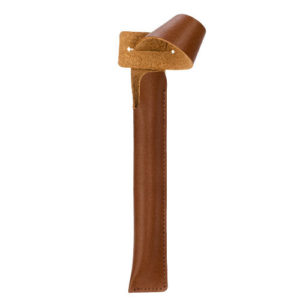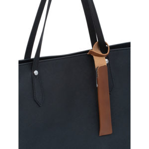 革の切り込みにホルダー部分を通して鞄の持ち手にタグのように取り付けることのできる本革ペンケースです。記念品やノベルティだけでなく、店舗用の小物としてもお使いいただいています。